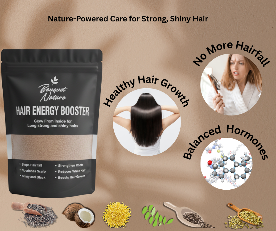 Hair Energy Booster bridges that nutritional gap. Packed with Multivitamins, it repairs your hair from the inside out, ensuring it looks healthy, vibrant, and full of life on the outside.